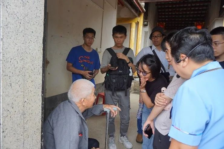 在宗祠外的空地,年过八旬的老村长为我们讲解官田村的革命历史。同学们还分组对当地村民进行口述调查,收获良多。通过访问,同学们增强了对历史空间和历史场景的感知,初步了解口述史的方法,感受到田野考察的乐趣。