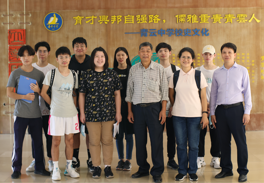 第二小组在徐翠丰老师的带领下随着旧圩的另一位居民欧先生沿着文海河的一条支流考察,据言此处曾经存在一个渡头,其时水道比现今宽得多;随后,在欧先生家中采访了欧先生与欧太太,欧先生拿出自己于2016年前后绘制的陈村地图,供同学们参观学习,并向同学们讲解了陈村的三圩六市、九头八尾等等;饭后,同学们跟随欧先生前往他的母校青云中学进行参观。