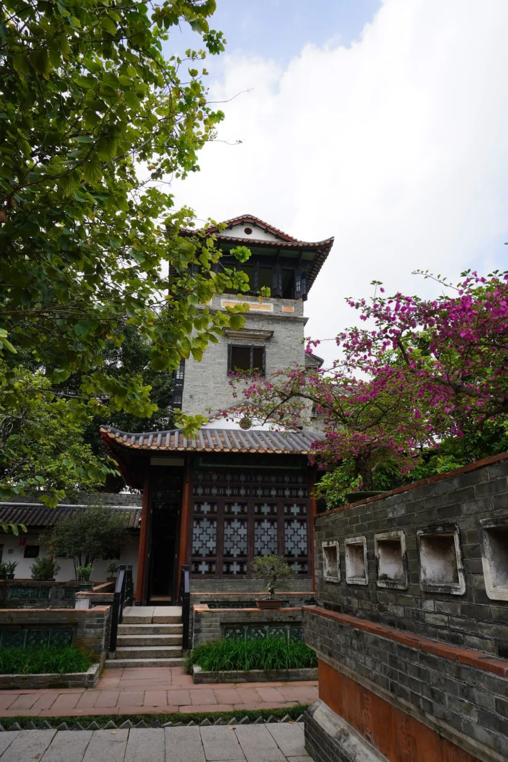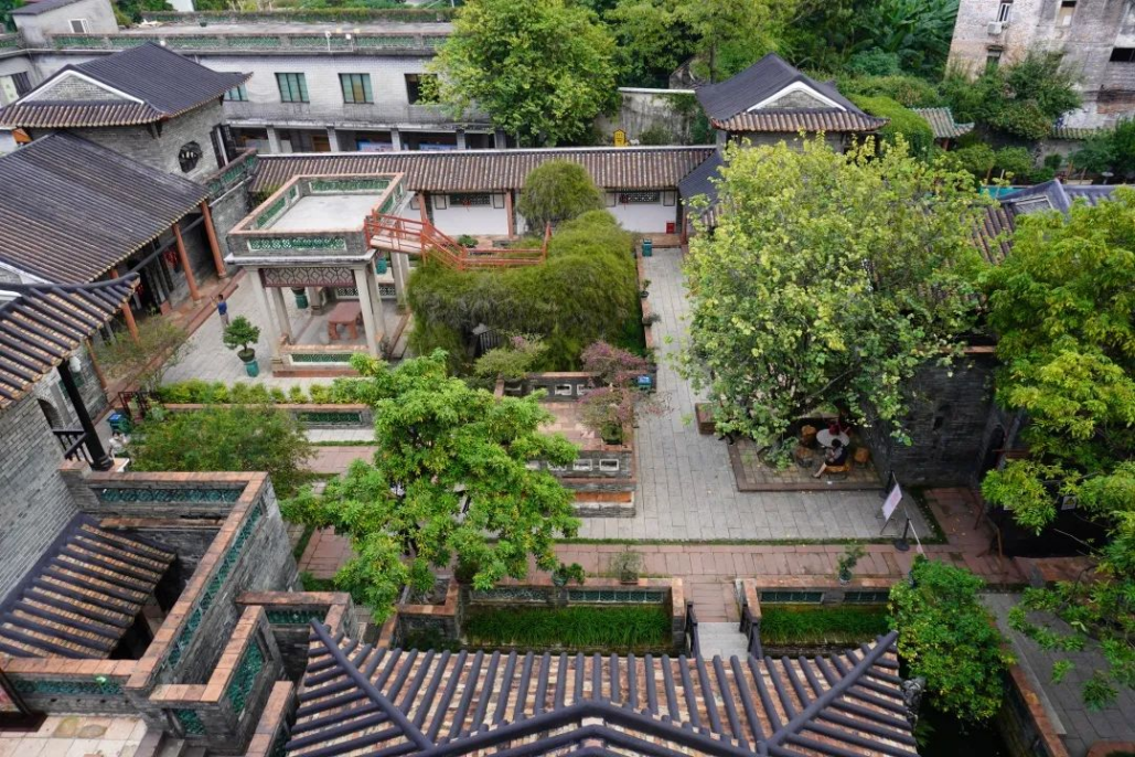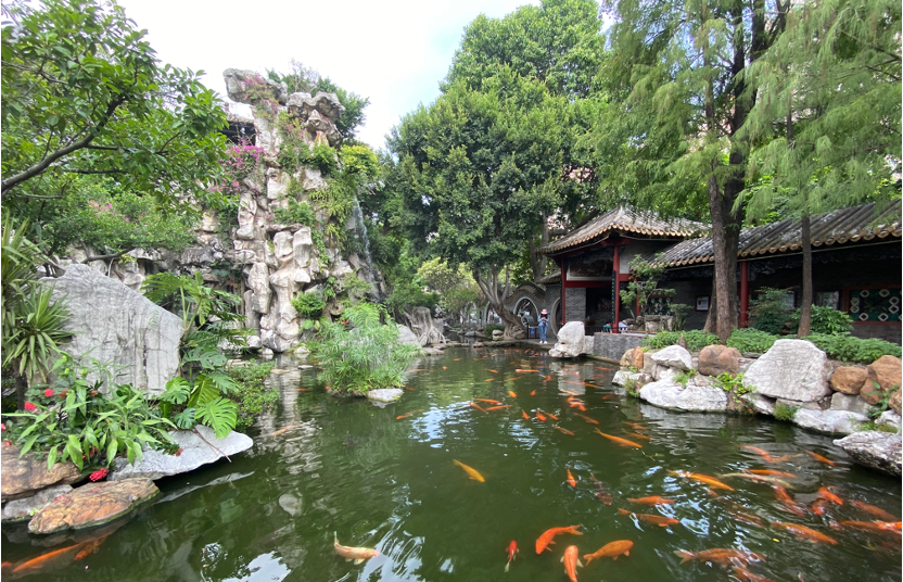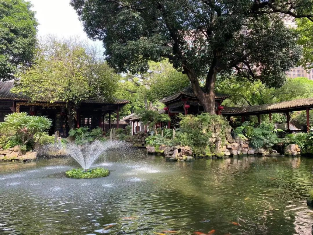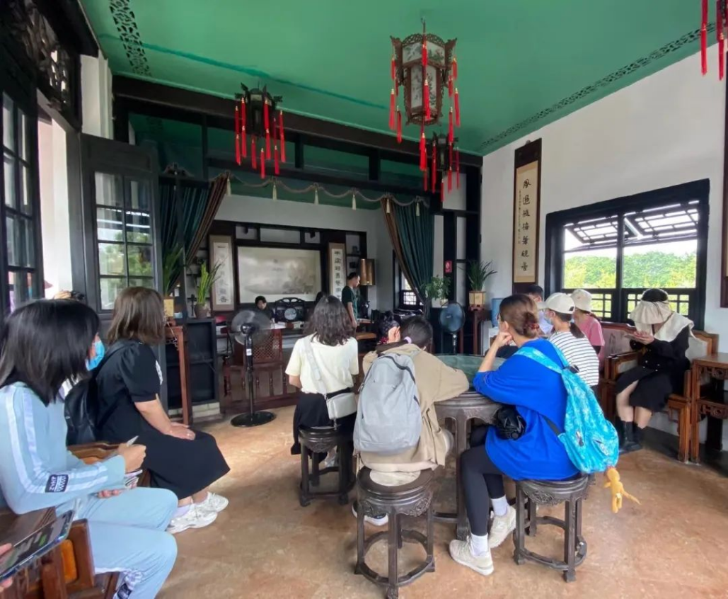 虽然可园是这三天去到的园林中最小巧的一座,但其独特的意蕴并不比其他园林少。岭南园林之特色在此浓缩。同学们在可园中观览双清室、擘红小榭、壶中天、可堂、可亭等地,感知到前人建造园林的布局智慧,边看边学,闲适意趣,流连忘返。恰巧遇到园中有丝竹演奏,同学们停下欣赏,丰富了园林的听觉体验。