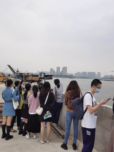 师生在石围塘码头考察航道