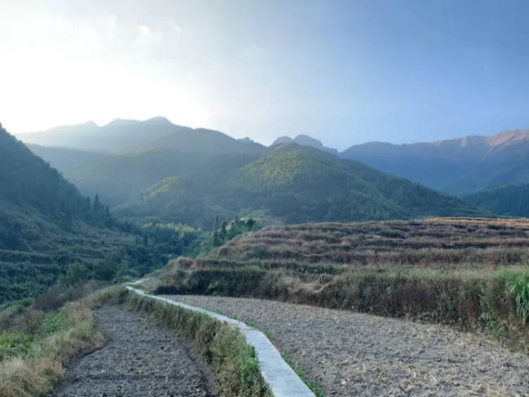离开楼下村,师生一行赶在日落前抵达乐昌市的五山镇,五山镇位于乐昌市东北部,有“广东北大门”之称,是红军长征广东段中重要的一站。五山梯田又称上黎家梯田、上黎家梯田,位于五山镇石下村一带,于明代开垦。