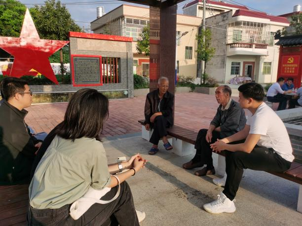 随后,师生们深入老围村,与当地的村民进行交流互动。我们在访谈中得知,1983年的一场大洪水,冲毁了村里的不少历史遗迹。根据村民的说法,在新中国成立之前,老围村是船塘镇最富裕的村落,众多地主聚集于此。我们还得知一则轶事:一两位来自青州镇的赖姓村民在老围村为欧阳氏守坟,后来出于某种原因改姓欧阳。这一趣闻耐人寻味,在一定程度上反映了不同族群之间的互动关系,使我们加深了对老围村历史的了解,增进了对当地族群关系的认识。