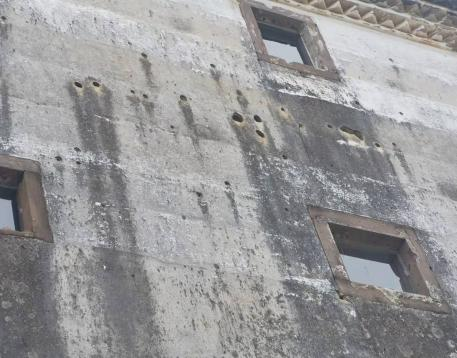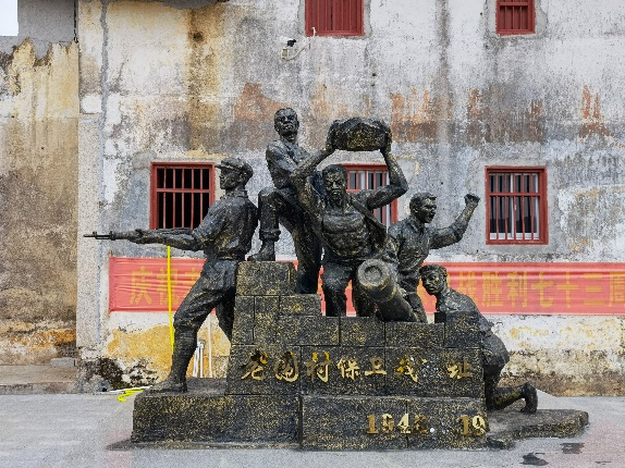 在书院不远处,一幢高大的三层围屋巍然屹立,历史上一场重要的战斗正是在此展开。1948年,国民党军队进驻船塘镇“清乡”,全副武装准备“围剿”老围村。该村共产党员欧阳明、欧阳南、欧阳托等人动员群众、组织民兵,凭借这幢围屋进行坚强阻击,打得敌兵寸步难进,迫使敌人当晚退回船塘镇。如今,我们依旧能够从围屋南侧的外墙上看到当时机枪扫射留下的枪眼。