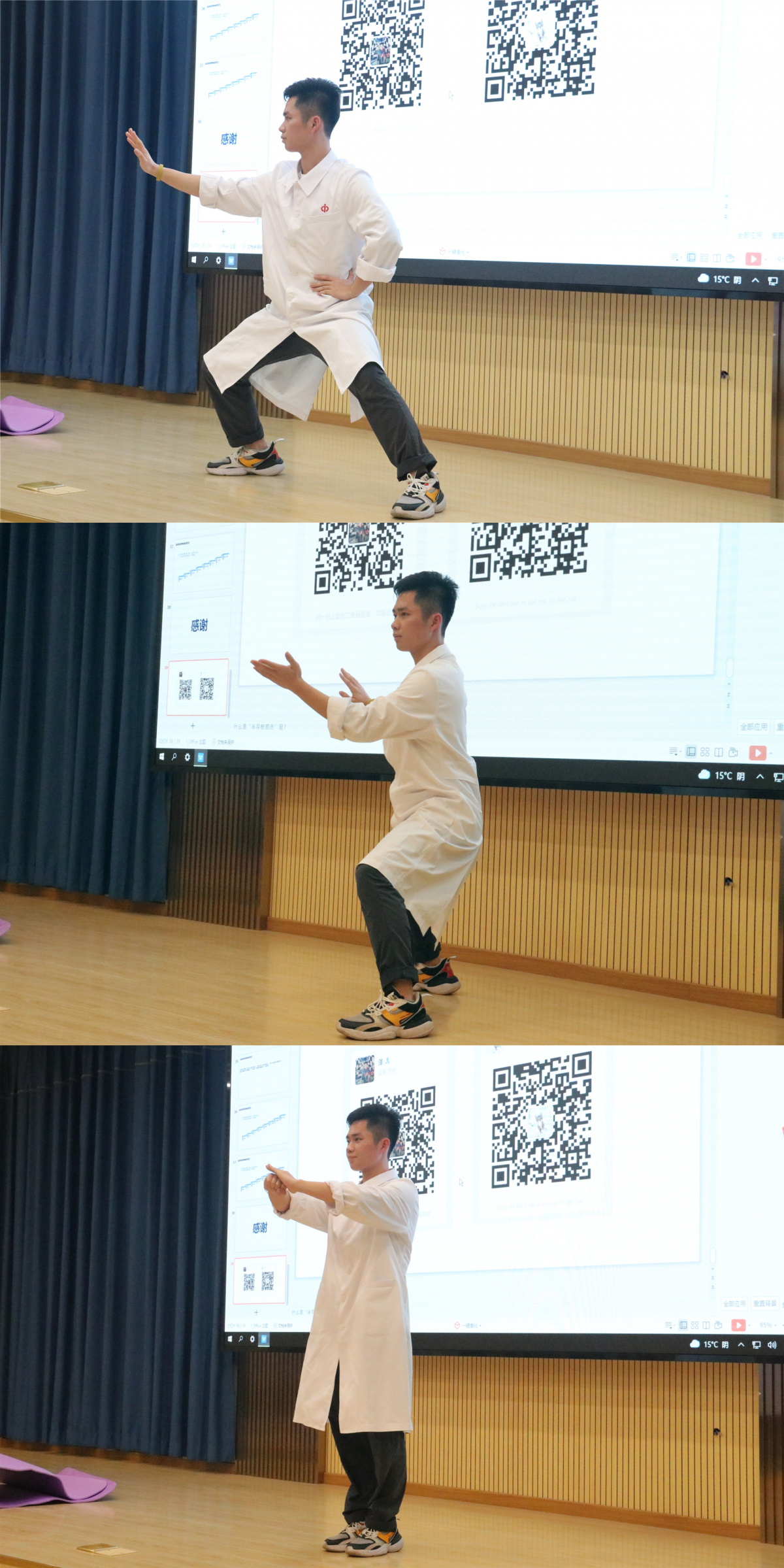 现场得知,阮懿泽师兄是陈氏太极拳第十三代弟子,在交流会结束前,他为大家表演了一段太极拳,以此提醒同学们通过体育锻炼达到强健体魄的效果。
