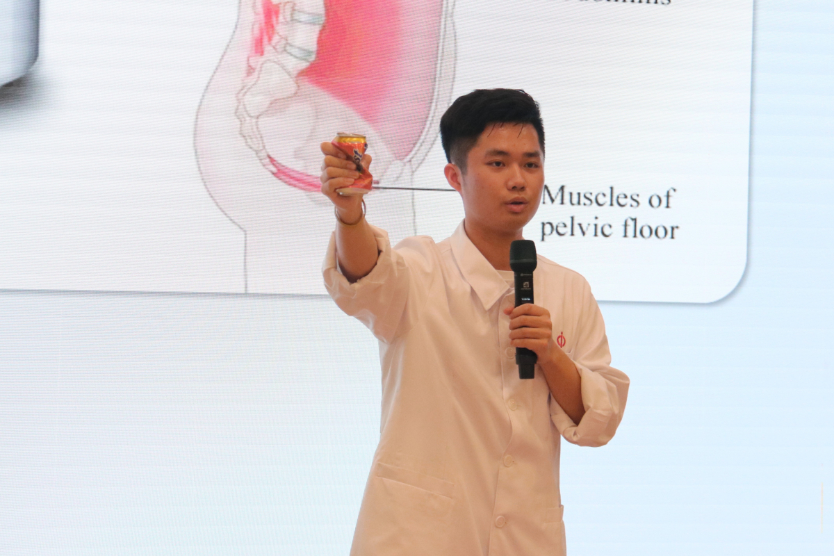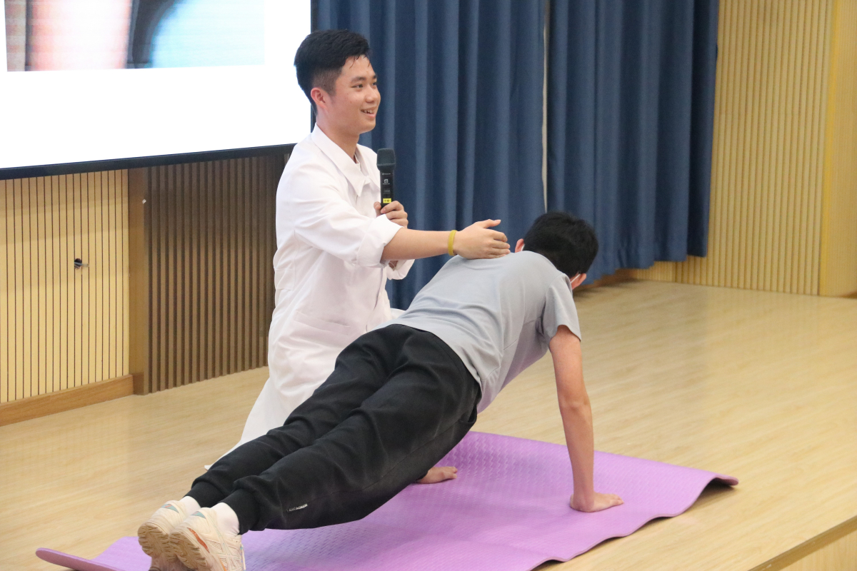 本次活动邀请了304am永利附属第一医院康复科的实习医生阮懿泽、邓致豪师兄现场讲演,向大家讲授并示范日常生活、劳动与运动中的损伤预防及处理知识。两位师兄强调“生命在于正确的运动”,预防损伤,需要我们加强核心力量的训练,也要重视运动前的热身与运动后的放松牵伸。针对已经发生损伤的情况,详细地介绍了常见应急处理(如止血、冰敷、固定等)的正确操作方法,并强调了许多容易被我们忽视的细节,如移开冰敷袋的正确时机是皮肤发麻后、四肢骨折固定应当露出指尖、通过抗炎药物过度抑制炎症反而有损组织愈合等。