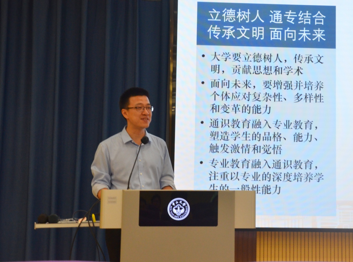 谢湜主任首先传达了高松校长《以高水平人才培养和高素质队伍建设为抓手,扎实推进学校高质量内涵式发展》的大会主题报告精神,他指出,高松校长的讲话高屋建瓴,立意高远,聚焦人才培养主题,从通识教育与专业教育相融合、深化教师人事制度改革、稳步推进学部制改革三方面提出现阶段学校的中心工作。高松校长提出要总结和传承中大文化,守正创新,继往开来,以立德树人为根本,以队伍建设为核心,以学科交叉融合为重点,以院系建设为基础,以体制机制改革为动力,稳步扎实推进学校高质量内涵式发展。陈春声书记在总结讲话中表示,高松校长的报告对稳步扎实推进学校高质量内涵式发展,提出了明确的发展路径,强调继续回归大学的育人根本,并阐述了十六字人才培养方针,为接下来学校事业的发展确定了明确的工作目标。