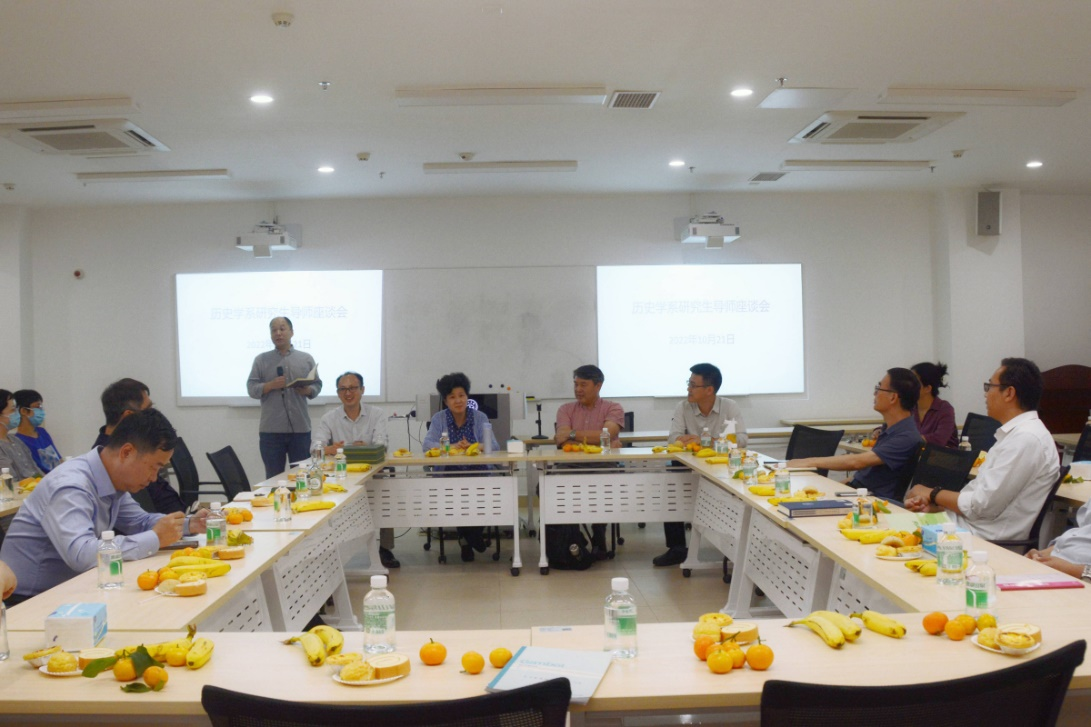 10月21日下午,历史学系师德建设主题教育暨研究生导师座谈会在广州校区南校园永芳堂433会议室召开,系领导、各专业方向的研究生导师、学工老师、教务老师等参加会议。会议由系副主任江滢河教授主持。