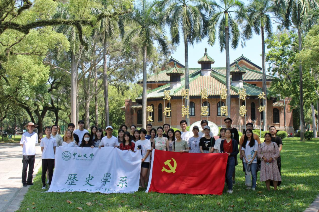 丹桂飘香,金秋送爽。为帮助新生更快地融入新环境,历史学系世界史与文博硕士生党支部(以下简称“世文硕支部”)联合中国近现代史硕士生党支部与中国古代史硕士生党支部,发扬“我为群众办实事”的党员服务精神,发挥专业特长,在9月5-6日精心组织了两场校园游览暨校史学习移动课堂活动。研究生党员带领22级新生从永芳堂到怀士堂、黑石屋、格兰堂、陈寅恪故居、马丁堂、岭南(大学)学院、北门牌坊、学校博物馆、校训牌等,参观了校园内的十多个富有校史教育意义的重要建筑。