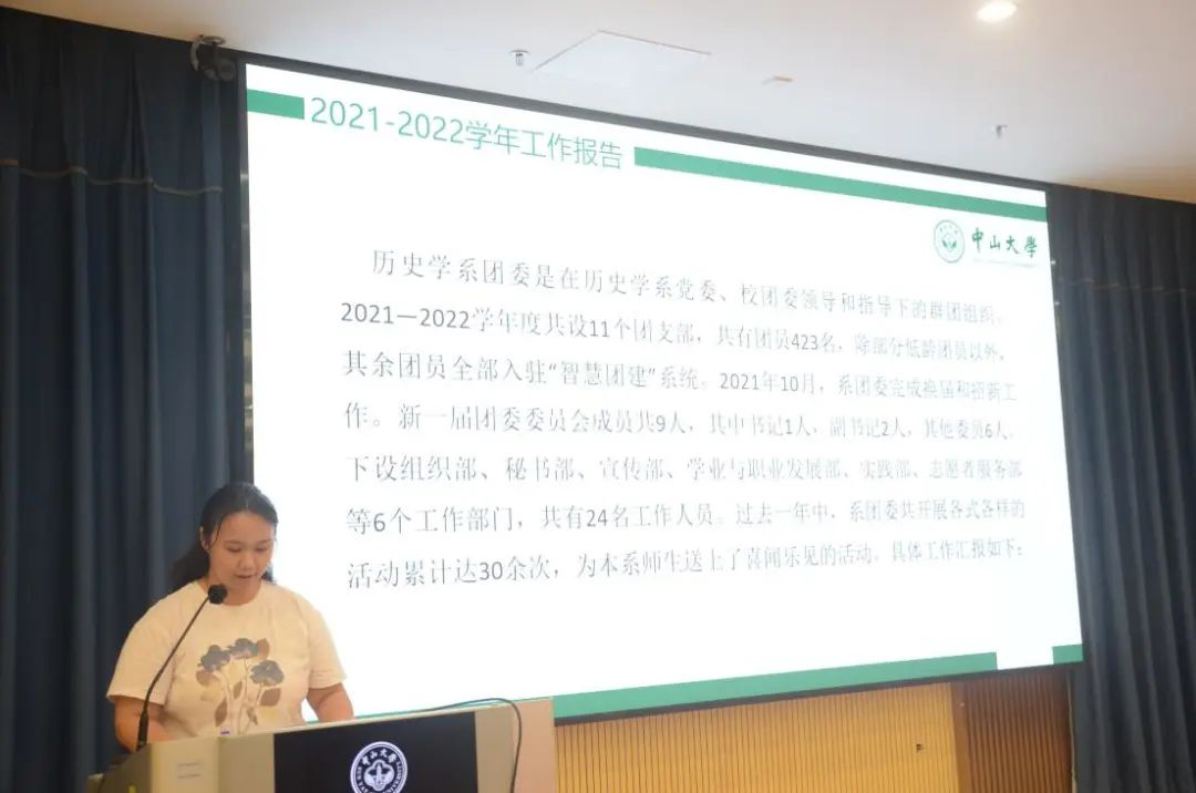 学系团委、学生会2021-2022学年的工作报告中指出,过去一年中,团委、学生会围绕全心全意为历史学系学生服务的中心思想,本着“开拓创新,锐意进取”的工作精神,扎实推进各项工作开展,不断加强组织自身建设,提升工作能力,在实践中不断提高自身素质和能力,并在工作中取得一定成效。