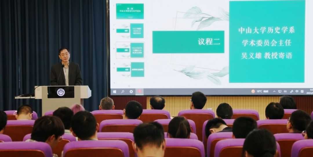 历史学系学术委员会主任吴义雄教授在讲话中指出,在即将迎来历史学系建系100周年之际,举办研究生史学论坛,体现了历史学系以学术为使命的精神传承。他对青年学子提出三点期望:第一,要坚持读书,读书能帮助我们应对网络时代知识和信息碎片化的挑战,构建自己的知识系统,在知识的海洋中站稳脚跟。第二,研究生要有自己的学术担当和使命,要承担起让历史学走到人类知识殿堂最高处的使命。第三,多尝试跨领域的交流,以问题为导向,在立足前人研究成果打好根基的基础上,做出有益的探讨,让史学论坛成为有探索性、前瞻性的论坛。