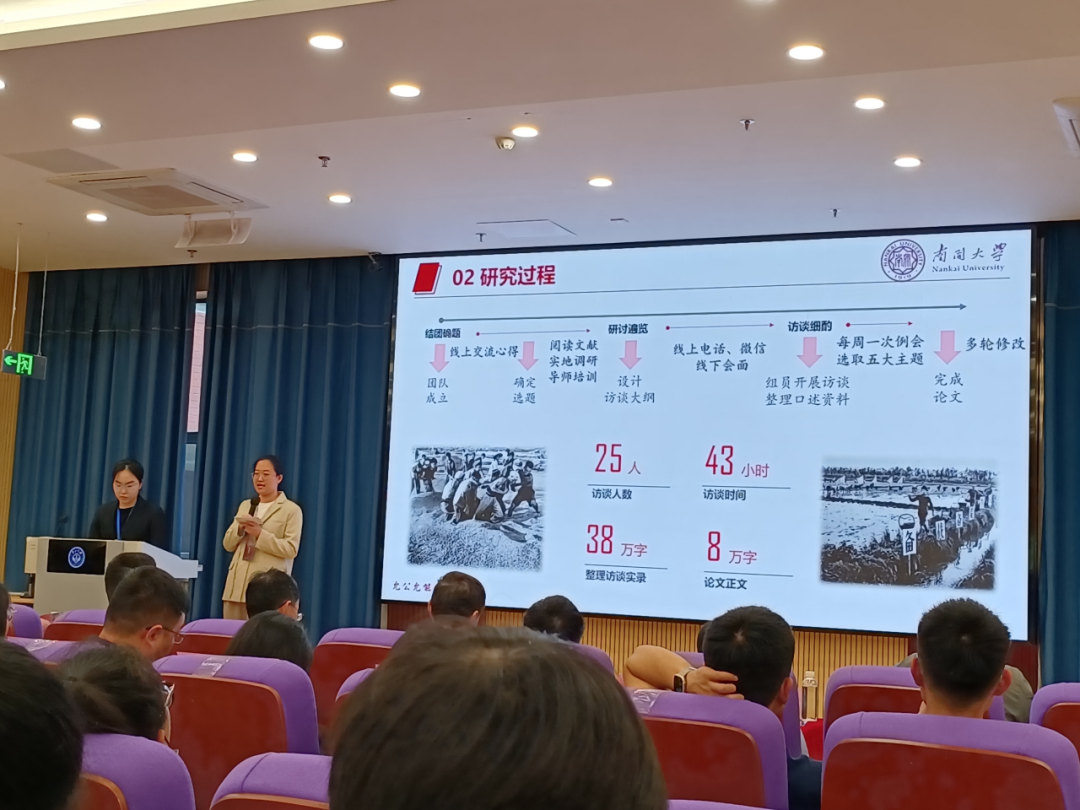 比赛共分为四轮,每轮三个小组轮流展示报告,随后进行答辩,各组就其研究情况向在场师生分享,将他们的口述史研究经历娓娓道来。